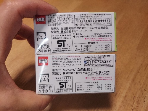 製造元は同じタカラトミーでも表記が違
