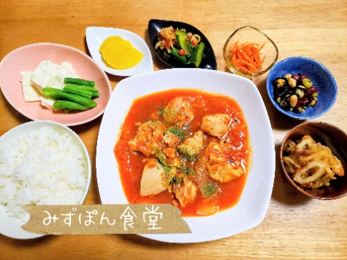 この日は「鶏肉のトマト煮」でした。