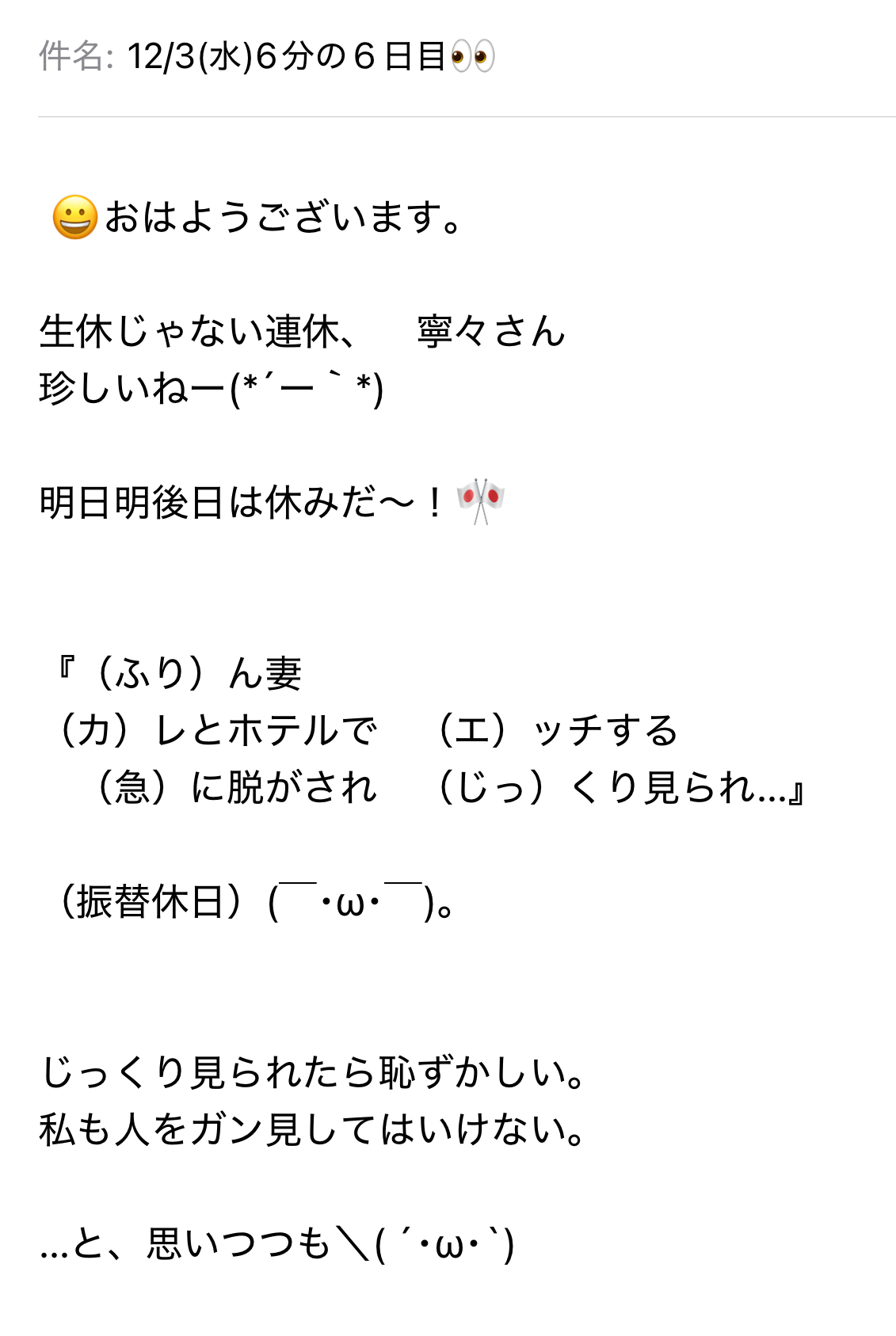 風俗情報ラブギャラリー / 熊本県 / 中央街 / ソープランド / ピカソ / 寧々 / 寧々の写メ日記一覧 / 12/3(水)6分の6日目?