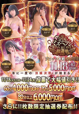 ミスヘブンにエントリーしている女の子たちに投票していただけると割引になります?????