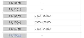 | 営業時間 | 10:00~翌4:00(予約時間 9:00~) |