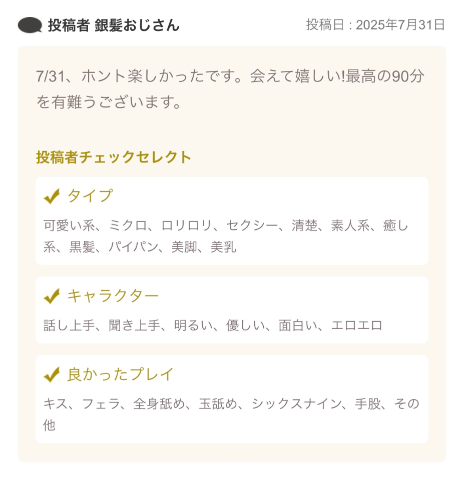 クチコミの投稿もしてくれた ご主人様?