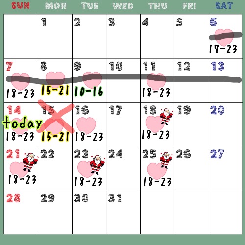 月曜日の出勤は無くなってます⚠️(以下参照)