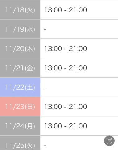 | 営業時間 | 9:00~23:00(受付時間:8:00~22:00) |