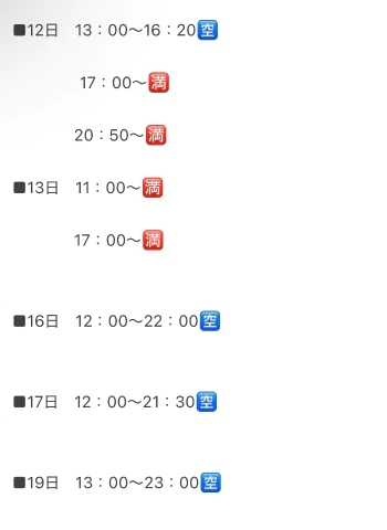 ⚠️ヘブンのはネット予約のみ反映されてます)