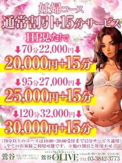 | ラブギャラリー ご覧のユーザー様へ 『妊婦コース通常割引 + 15分サービス』 ラブギャラリー 見た!で 70分 22,000円 ⇒ 20,000円+15分 95分 27,000円 ⇒ 25,000円+15分 120分 32,000円 ⇒ 30,000円+15分 (70分以上のコースは10:00~20:00受付まで15分サービス適用) 全てのお客様ご利用可能です。 ※他の割引と併用不可 妊婦コースご希望の方、絶対オススメです♪ ❤お問合せ大歓迎です❤ ----- 【鶯谷 Olive(オリーブ)】 HP ⇒ https://olive1.jp/top.php お問合せTEL ⇒ 03-3842-3773 母乳、妊婦、幼児プレイ、若妻ヘルス専門店 ----- |