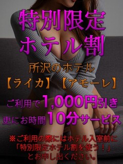 | ★☆特別限定ホテル割☆★ 所沢駅近ホテル 【E/X】【ライカ】【バニラリゾート】 ご利用で、1,000円割引・更にお時間10分サービス! 『特別限定ホテル割』必ずお申し出下さい! (本指名のお客様は特別限定ホテル割サービスは不可) ※申告がなければ割引の適用は致しかねます。 ※他のサービスとの併用不可 ※当店は風営法第二条6項二号に触れるホテルとの提携は一切有りません。 予約状況などお気軽にどうぞ 皆様からのお電話お待ちしています。 ◆TEL <a href="tel:0429375005">04-2937-5005</a> ◆URL http://www.saiduma.com/ |