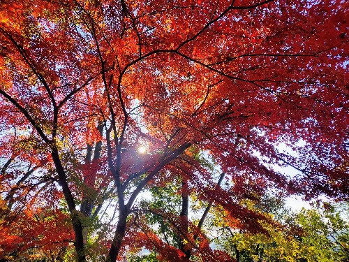 今朝の紅葉。あまりの美しさに暫く眺めて