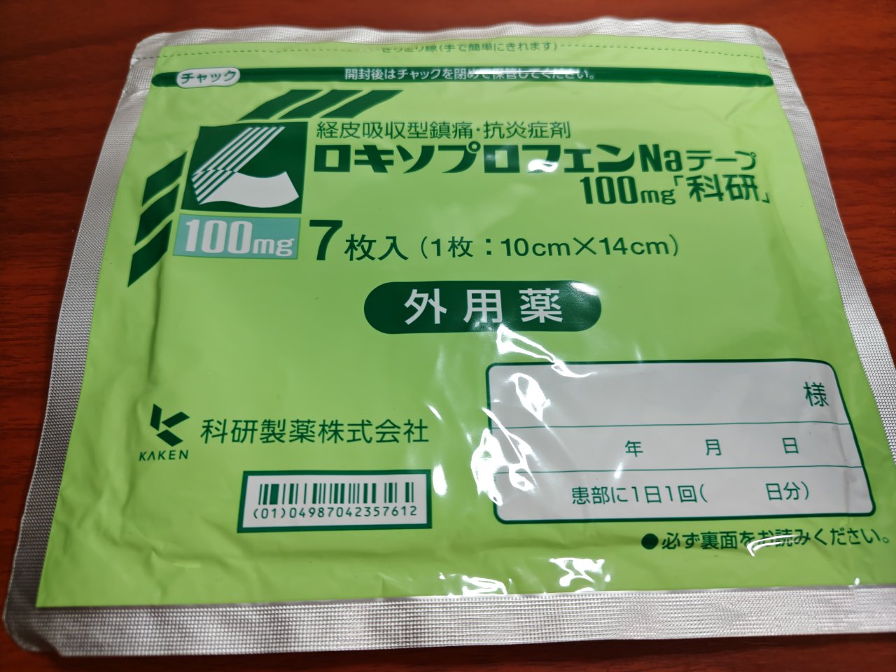で、こないだ転んで膝を打った私はしょうがないからぎっくり腰のときに整形外科でもらったこの湿布↓貼ってたんですけど、