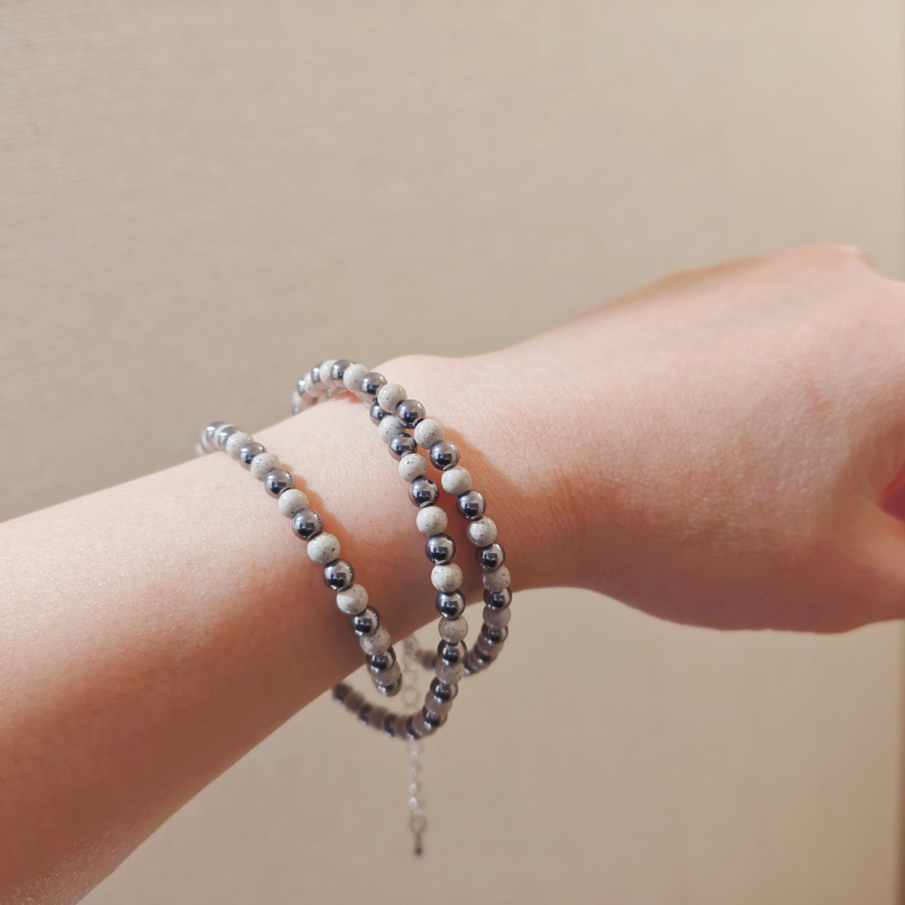 っていうか私は敏感肌のため首につけてるとなんかチクチクみたいなのを感じてしまうため、つけるときはこうやって↓手首に巻いてます。