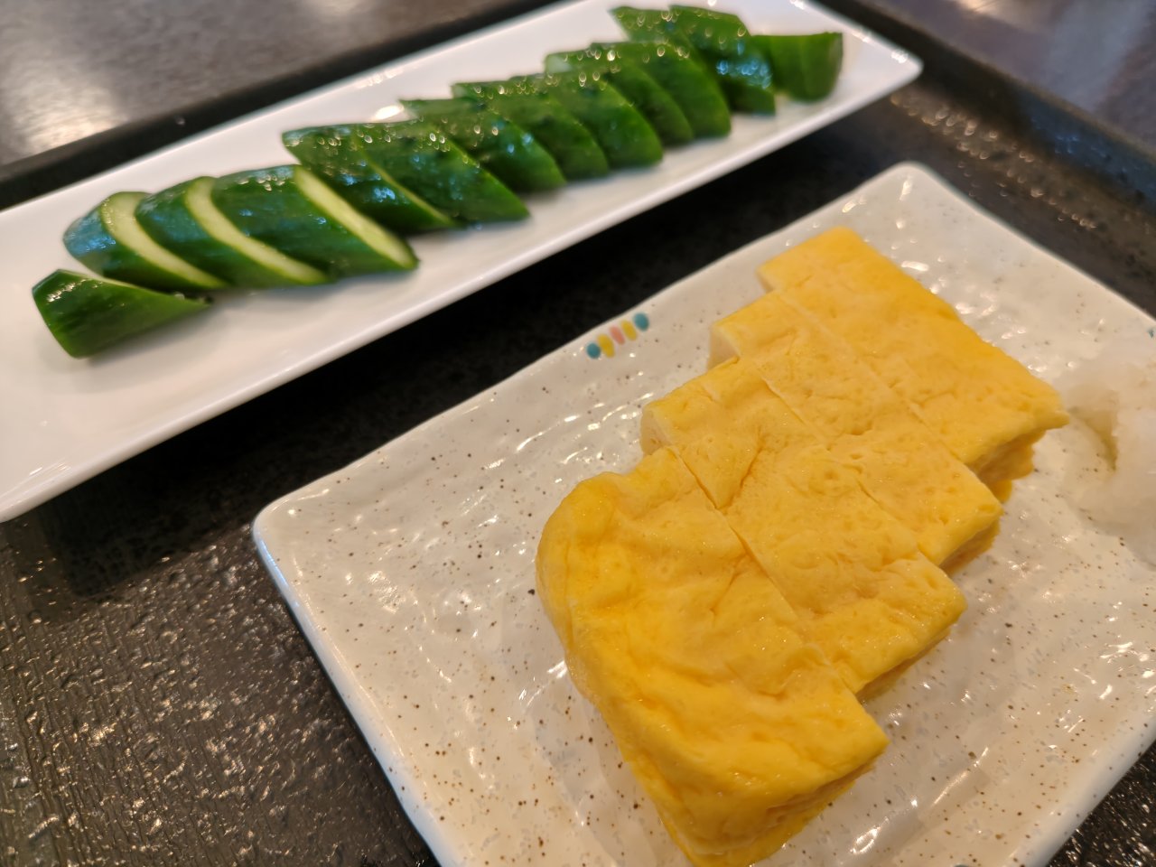 きゅうりの一本漬けと卵焼き、