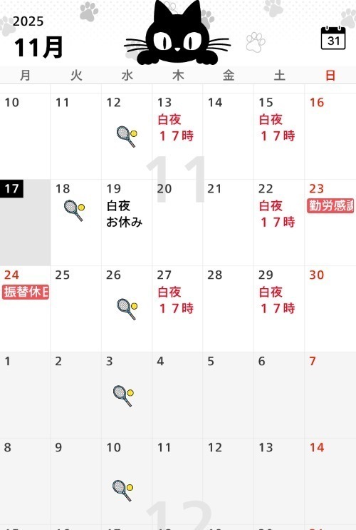 17時から出勤予定です