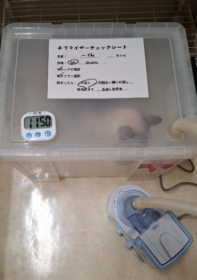 それと愛猫が風邪をひいてしまい🤧 昨日病院で 薬剤のスチームが出る 初ネフライザーに入ってきました