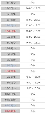 | 営業時間 | 9:00~23:00(受付8:30~) |