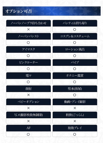 | 交通手段・受付方法 | 東京(都内全域)・神奈川(川崎、町田、横浜)・埼玉(大宮、西川口、越谷)・千葉(船橋、柏、津田沼)などのホテルや自宅へ派遣・出張・デリバリー。 その他、五反田・品川・目黒・恵比寿の指定場所で路上待ち合わせや、広範囲のお好きな駅で徒歩や車待ち合わせをし、一緒にホテルへチェックインする待ち合わせ型 ※詳しくは『アンダーナビLG見た』と言って、お電話でお問い合わせ下さい。 |