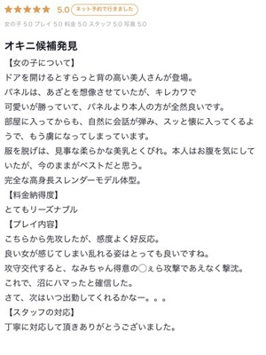 ルックスはまさか?こんな清楚で真面目そうな娘がエッチな事出来るの?って印象ですが感じやすい体質らしく見た目とは裏腹で第一印象とは裏腹の乱れたプレイが楽しめます