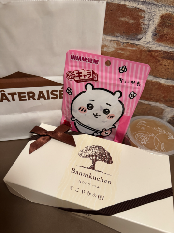 大好きなバームクーヘン、ちいかわ、桃ゼリー…ぜんぶ好きなやつでうれしかった!