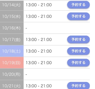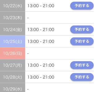 営業時間 | 9:00~23:00(受付時間:8:00~22:00) |
