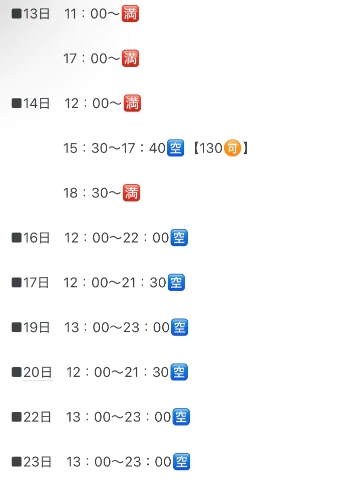 ⚠️ヘブンのはネット予約のみ反映されてます)