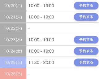 営業時間 | 9:00~23:00(受付時間:8:00~22:00) |